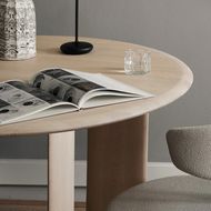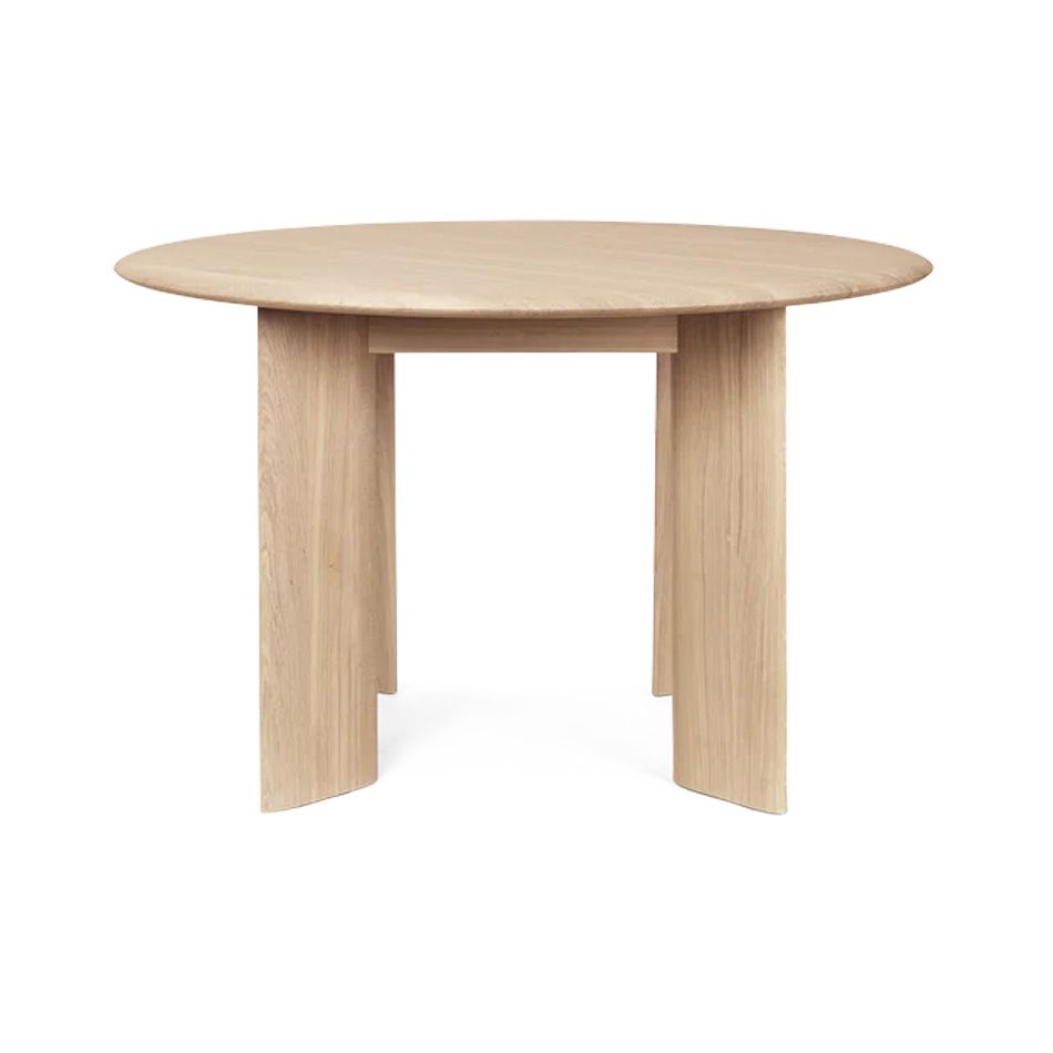 Bevel round table by Ferm Living is made entirely from solid oak with a natural finish and sculpted legs that adds a modern edge to the otherwise classic design.