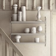 String pocket wall shelf Sand consists of three shelves in MDF lacquered, and two side panels in powder coated steel. Last unit in stock.